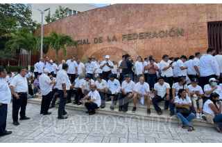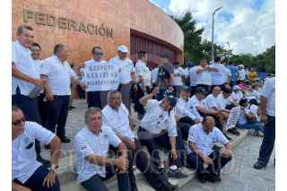 CANCÚN, QUINTANA ROO, 14DICIEMBRE2022.- Más de un centenar de Taxistas de los municipios de Benito Juárez, Solidaridad, Tulum y Puerto Morelos, se manifestaron la mañana de hoy afuera de las instalación del Poder Judicial de la Federación para que no se apruebe la operación de la plataforma Uber. FOTO: ELIZABETH RUIZ/CUARTOSCURO.COM