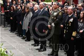 PUEBLA, PUEBLA, 14DICIEMBRE2022.- Andrés Manuel López Obrador, presidente de México, encabezó en la Casa Aguayo la primer guardia de honor en memoria de Miguel Barbosa, gobernador de Puebla. El presidente, estuvo acompañado por Adán Augusto, secretario de Gobernación, Luis Cresencio Sandoval, secretario de la Defensa Nacional de México; Rafael Ojeda Durán, secretario de Marina, y familiares del gobernador fallecido. FOTO: PRESIDENCIA/CUARTOSCURO.COM