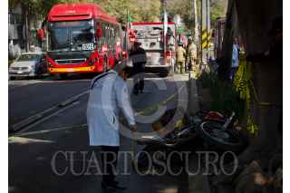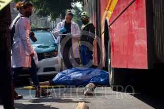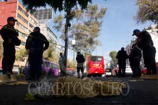 CIUDAD DE MÉXICO, 16DICIEMBRE2022.- Un hombre perdió la vida luego de estrellar su motocicleta contra un árbol y posteriormente ser atropellado por una unidad del Metrobús de la Linea 1 en Avenida Insurgentes. Al lugar arribaron Bomberos, policías y peritos de la Fiscalía. FOTO: ROGELIO MORALES /CUARTOSCURO.COM