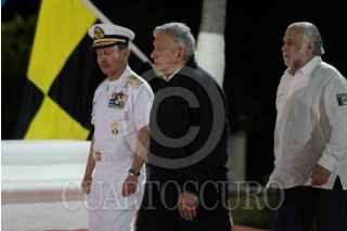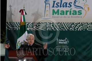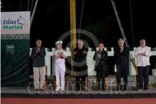 ISLAS MARÍAS, NAYARIT, 16DICIEMBRE2022.- Andrés Manuel López Obrador, presidente de México, encabezó la inauguración de la Reserva de la Biósfera de Islas Marías. El presidente estuvo acompañado de: Miguel Ángel Navarro Quintero, gobernador de Nayarit; Rafael Ojeda Durán, secretario de Marina; Beatriz Gutiérrez Müller, presidenta honoraria del Consejo Asesor Honorario de la Coordinación Nacional Memoria Histórica y Cultural de México; Rubén Rocha, gobernador de Sinaloa y Miguel Torruco Marqués, Secretario de Turismo. FOTO: MARIO JASSO/CUARTOSCURO.COM