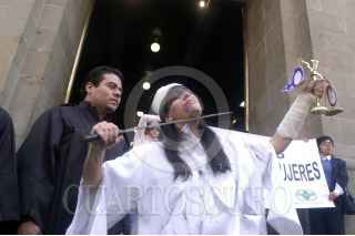 MÉXICO, D.F., 06MARZO2007.- La Red por los Derechos Sexuales y Reproductivos en México, realizó un performence afuera de la Suprema Corte de Justicia de la Nación por considerar que en el país no se garantizan los derechos sexuales de las mujeres. FOTO: JERONIMO MORENO/CUARTOSCURO.COM