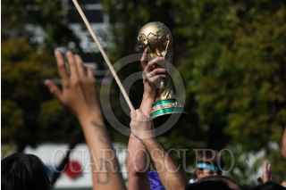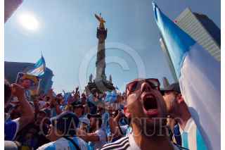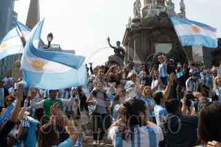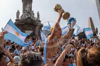 CIUDAD DE MÉXICO, 18DICIEMBRE2022.- La comunidad argentina festejo que su selección comandada por Lionel Messi ganará el mundial de fútbol en Qatar, esto luego de que la albiceleste empatará a 3 goles con su similar francés, pero que en la definición por penales los sudamericanos lograrán imponerse y así obtener su tercera copa del mundo en su historia. FOTO: MOISÉS PABLO/CUARTOSCURO.COM