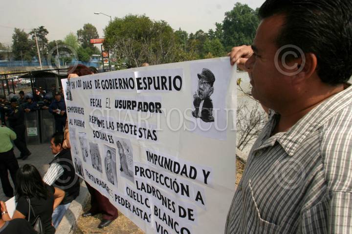 MÉXICO, D.F., 09MARZO2007.- El diputado local Balfre Vargas Cortez y Alejandro Sánchez Camacho, diputado federal, encabezaron una manifestación afuera de los Pinos a cien días del gobierno de Felipe Calderón, Presidente de la República. FOTO: MOISÉS PABLO/CUARTOSCURO.COM