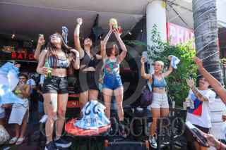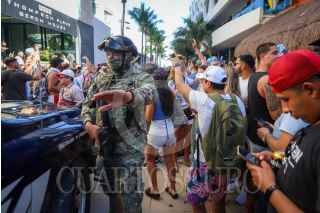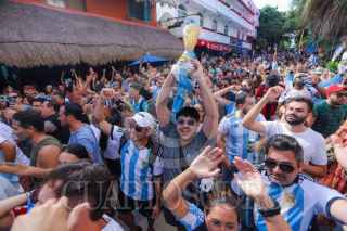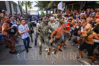 PLAYA DEL CARMEN, QUINTANA ROO, 18DICIEMBRE2022.- Un conato de enfrentamiento, entre elementos de la Marina Armada de México y aficionados de la Selección Argentina, quien ganó la Copa del Mundo en Qatar. Los hinchas festejaron afuera de los bares el triunfo de su equipo. FOTO: CUARTOSCURO.COM