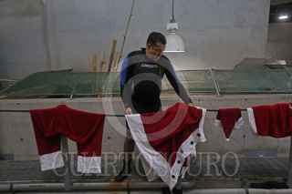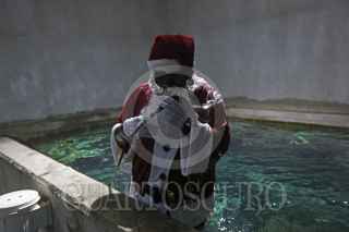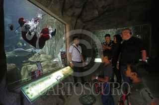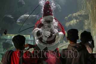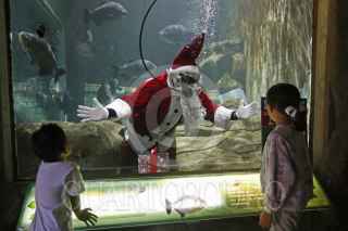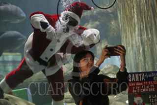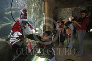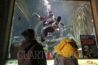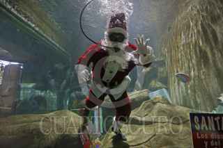 GUADALAJARA, JALISCO, 19DICIEMBRE2022.- Esta temporada navideña, Santa Claus se sumerge en el tanque de peces Pacúes del Acuario del Zoológico Guadalajara, esta actividad estará disponible desde el pasado 19 de Diciembre y tendrá como vigencia el 08 de enero del 2023. FOTO: FERNANDO CARRANZA GARCIA / CUARTOSCURO.COM