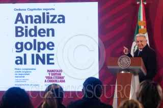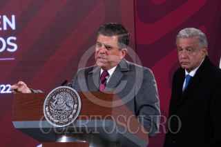 CIUDAD DE MÉXICO, 19DICIEMBRE2022.- Andrés Manuel López Obrador, Presidente de México, y Ricardo Sheffield Padilla, titular de Profeco, durante la mañanera, en la cual hablaron sobre el tema de Ticketmaster, el atentado a Curi Gómez Leyva y la continuidad de las mañaneras. FOTO: MOISÉS PABLO/CUARTOSCURO.COM