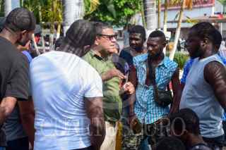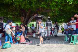 TAPACHULA, CHIAPAS, 20DICIEMBRE2022.- Elementos del Instituto Nacional de Migración (INM) y Guardia Nacional acudieron al parque Miguel Hidalgo para dialogar con los migrantes que transitan por la zona. Un aproximado de 100 personas se entregaron con las autoridades del Gobierno Federal para poder obtener la forma migratoria múltiple que les permite establecerse 30 días en territorio mexicano. FOTO: DAMIÁN SÁNCHEZ/CUARTOSCURO.COM