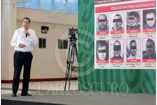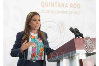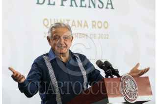 CHETUMAL, QUINTANA ROO, 22DICIEMBRE2022.- Andrés Manuel López Obrador, presidente de México, en compañía del gabinete de seguridad integrado por: Luis Cresencio Sandoval, secretario de la Defensa Nacional (SEDENA); Rafael Ojeda Durán, secretario de Marina; Luis Rodríguez Bucio, comandante de la Guardia Nacional, y Ricardo Mejía Berdeja, subsecretario de Seguridad Pública, así como de Adán Augusto López, secretario de Gobernación, y la gobernadora Mara Lezama encabezaron la conferencia matutina para la presentación de la cifras en materia de seguridad. FOTO: PRESIDENCIA/CUARTOSCURO.COM
