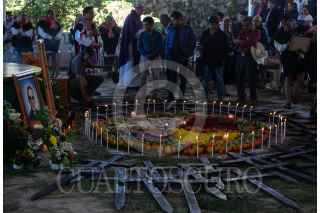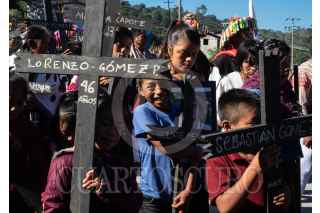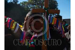 CHENALHÓ, CHIAPAS, 22DICIEMBRE2022.- La organización pacífica de Las Abejas de Acteal celebra su 30 aniversario desde su conformación y conmemoran 25 años desde la masacre de sus compañeros a cargo de grupos paramilitares. Los sobrevivientes de la masacre, familiares, integrantes e invitados de diferentes organizaciones sociales y público en general realizaron una procesión desde el entronque de Majomut rumbo a la Tierra Sagrada de los Mártires de Acteal. Ahí se congregaron para realizar una eucaristía en presencia de diferentes representantes regionales de la Iglesia catolica. Recordaron como cada año la falta de justicia y a sus familiares caídos aquel 22 de diciembre de 1997. FOTO: ISABEL MATEOS /CUARTOSCURO.COM