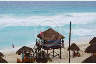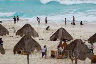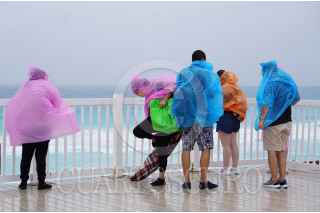 CANCÚN, QUINTANA ROO, 25DICIEMBRE2022.- En navidad el turismo no se queda a refugiarse de la lluvia, se puede observar a decenas de turistas en el mirador de Cancún listos para tomarse fotos, el frente frío número diecinueve trae fuertes rachas de viento y lluvia a todo el Caribe Mexicano. FOTO: ELIZABETH RUIZ/CUARTOSCURO.COM