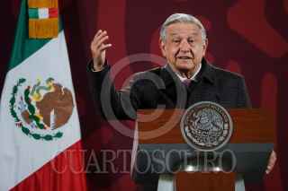 CIUDAD DE MÉXICO, 26DICIEMBRE2022.- Andrés Manuel López Obrador, presidente de México, y David Aguilar Romero, coordinador general de Educación y Divulgación de la Procuraduría Federal del Consumidor (Profeco), encabezaron la conferencia de prensa matutina en que se expusieron los precios de los combustibles, así como dar respuesta a los cuestionamientos de los medios de comunicación. FOTO: GALO CAÑAS/CUARTOSCURO.COM