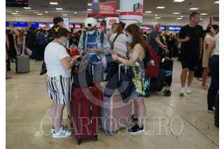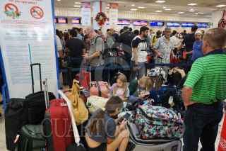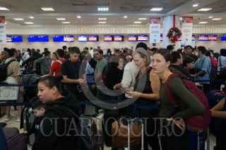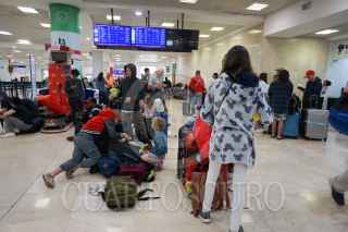 CANCÚN, QUINTANA ROO, 27DICIEMBRE2022.- Turistas estadounidenses están varados en el Aeropuerto Internacional de Cancún debido a la demora o retraso de los vuelos hacia la Unión Americana por el mal clima que se vive en aquella nación. FOTO: ELIZABETH RUIZ/CUARTOSCURO.COM