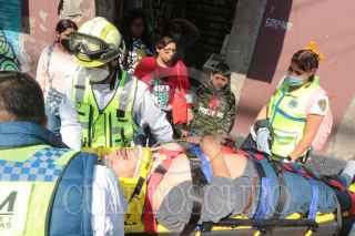 CIUDAD DE MÉXICO, 27DICIEMBRE2022.- Un hombre quedo malherido al caer dentro de un cubo de un elevador en la Plaza Comercial, ubicada en la calle de República de Venezuela y El Carmen, colonia Centro. La víctima fue trasladada al Hospital de Balbuena por elementos del ERUM. FOTO: ROGELIO MORALES/CUARTOSCUR.COM