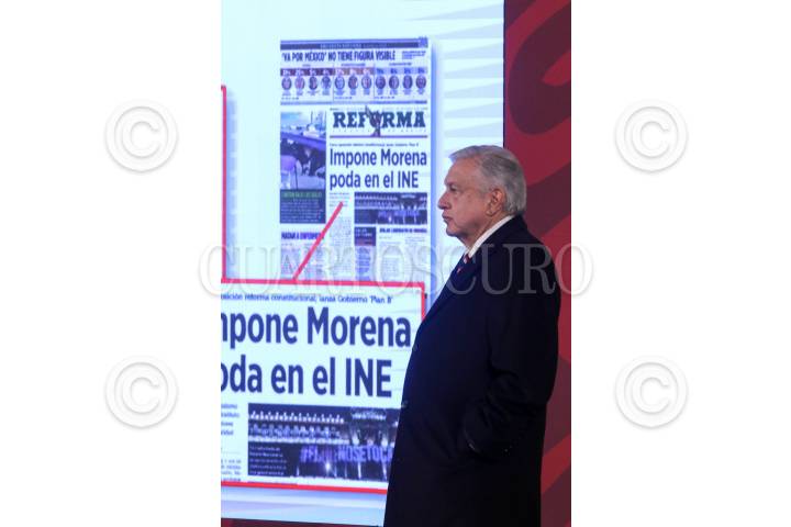 CIUDAD DE MÉXICO, 28DICIEMBRE2022.- Andrés Manuel López Obrador, Presidente de México, y Ana Elizabeth García Vilchis, durante la mañanera en la cual se presentaron el recuento de las mentiras del año en los medios de comunicación. FOTO: MOISÉS PABLO/CUARTOSCURO.COM