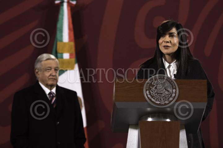 CIUDAD DE MÉXICO, 28DICIEMBRE2022.- Andrés Manuel López Obrador, Presidente de México, y Ana Elizabeth García Vilchis, durante la mañanera en la cual se presentaron el recuento de las mentiras del año en los medios de comunicación. FOTO: MOISÉS PABLO/CUARTOSCURO.COM