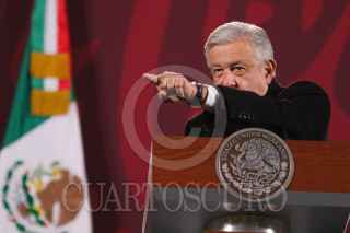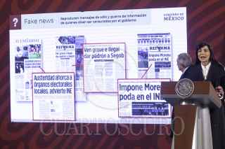 CIUDAD DE MÉXICO, 28DICIEMBRE2022.- Andrés Manuel López Obrador, Presidente de México, y Ana Elizabeth García Vilchis, durante la mañanera en la cual se presentaron el recuento de las mentiras del año en los medios de comunicación. FOTO: MOISÉS PABLO/CUARTOSCURO.COM