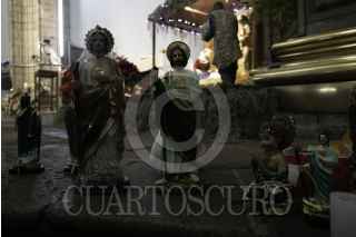 CIUDAD DE MÉXICO, 28DICIEMBRE2022.- Cada 28 de mes decenas de devotos de San Judas Tadeo se congregan en la Iglesia San Hipolito ubicada afuera del metro Hidalgo y reforma con el fin de llevar sus figurillas a bendecir o pedir favores a su santo. FOTO: ANDREA MURCIA /CUARTOSCURO.COM