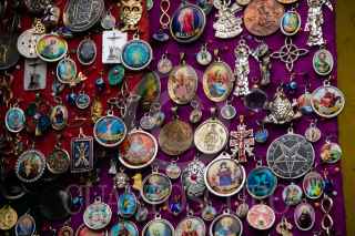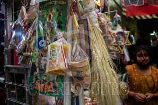 CIUDAD DE MÉXICO. 29DICIEMBRE2022.- Veladoras, medallitas, jabones, palmas y borregitos son algunos de los amuletos que se comercian en el Mercado de Sonora, para iniciar el Año Nuevo de el año 2023. FOTO: VICTORIA VALTIERRA/CUARTOSCURO.COM
