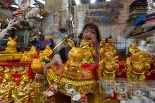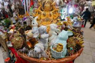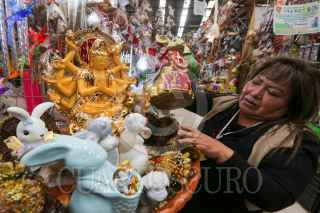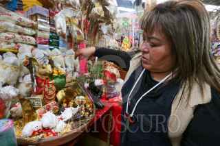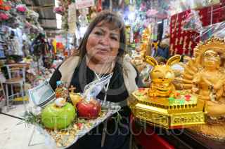 TOLUCA, ESTADO DE MÉXICO, 30DICIEMBRE2022.- Antonia Terrón mejor conocida como “Toñita” comerciante del Mercado 16 de Septiembre en Toluca es la más buscados en estas fechas por los amuletos que prepara, sus clientes saben que con ella encuentran desde Budas, elefantes, borreguitos, cochinitos dorados, plantas, veladoras, manzanas, cuernos de la abundancia y semillas para la prosperidad, y este año conejos, para ella cada unos de sus clientes es muy especial y prepara sus amuletos con amor para quienes buscan el amor, salud, prosperidad económica consigan lo que tanto buscan; tiene más de 50 años en este mercado y su familia sigue su tradición. FOTO: CRISANTA ESPINOSA AGUILAR /CUARTOSCURO.COM