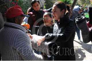 CIUDAD DE MÉXICO, 31DICIEMBRE2022.- Ante las bajas temperaturas registradas en los últimos días en la ciudad, la jefa de gobierno, Claudia Sheinbaum, recorrió la colonia San Francisco Tlalnepantla, en Xochimilco, para repartir cobijas y comida a los habitantes. FOTO: DANIEL AUGUSTO /CUARTOSCURO.COM