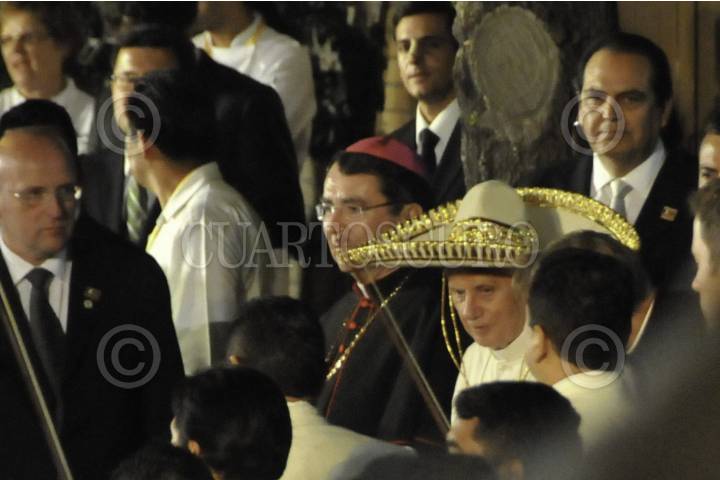 GUANAJUATO, 31DICIEMBRE2022.- El Papa emérito Benedicto XVI murió a los 95 años en el Monasterio Mater Ecclesiae, ubicado en los Jardines del Vaticano. Las siguientes imágenes son de cuando el Sumo Pontífice visitó Guanajuato en el año 2012, el cual fue uno de sus primeros viajes luego de asumir su papado. Lo acompañaron en esa gira el entonces presidente Felipe Calderón y su esposa Margarita Zavala. FOTO: ARCHIVO CUARTOSCURO.COM