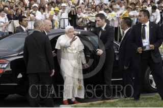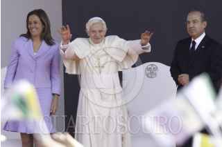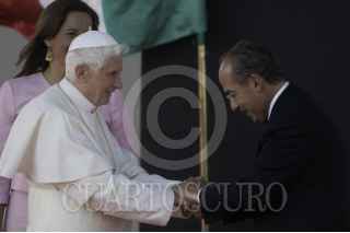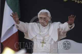 GUANAJUATO, 31DICIEMBRE2022.- El Papa emérito Benedicto XVI murió a los 95 años en el Monasterio Mater Ecclesiae, ubicado en los Jardines del Vaticano. Las siguientes imágenes son de cuando el Sumo Pontífice visitó Guanajuato en el año 2012, el cual fue uno de sus primeros viajes luego de asumir su papado. Lo acompañaron en esa gira el entonces presidente Felipe Calderón y su esposa Margarita Zavala. FOTO: ARCHIVO CUARTOSCURO.COM