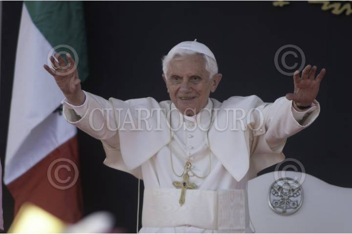 GUANAJUATO, 31DICIEMBRE2022.- El Papa emérito Benedicto XVI murió a los 95 años en el Monasterio Mater Ecclesiae, ubicado en los Jardines del Vaticano. Las siguientes imágenes son de cuando el Sumo Pontífice visitó Guanajuato en el año 2012, el cual fue uno de sus primeros viajes luego de asumir su papado. Lo acompañaron en esa gira el entonces presidente Felipe Calderón y su esposa Margarita Zavala. FOTO: ARCHIVO CUARTOSCURO.COM