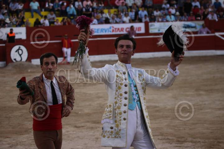 MÉRIDA, YUCATÁN, 01ENERO2023.- Esta tarde se llevó a cabo la primera corrida de Rejones de la temporada 2023 en la Monumental Plaza de Toros Mérida que lució casi llena. Con toros de Enrique Fraga de presencia y juego variado con pesos de entre 460 y 490 kilos el triunfador de la tarde fue Fauro Aloi quién cortó una oreja en su primer toro. La suerte no fue igual para los rejoneadores Joao Ribeiro y Tarik Othón quienes pasaron inéditos dejando interesantes pinceladas ecuestres para el público. Destaca la participación de los forjados portugueses de A Posento Da Chamusca quienes se vieron en aprietos tras varias revolcadas con el astado. FOTO: MARTIN ZETINA/CUARTOSCURO.COM
