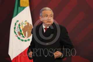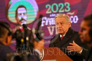 CIUDAD DE MÉXICO. 02ENERO2023.- El primer mandatario del país, Andrés Manuel López Obrador, en la conferencia de prensa de esta mañana de inicio de año. En el salón Tesorería del Palacio Nacional. FOTO: VICTORIA VALTIERRA/CUARTOSCURO.COM