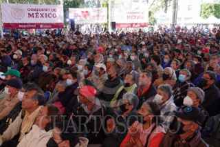 CIUDAD DE MÉXICO, 03ENERO2023.- Ariadna Montiel Reyes, secretaria de Bienestar; Berenice Hernández Calderón, alcaldesa de Tláhuac, y el diputado Rigoberto Salgado Vásquez, encabezaron la entrega de las Tarjetas Bienestar a adultos mayores en la explanada de la alcaldía Tláhuac. FOTO: GRACIELA LÓPEZ /CUARTOSCURO.COM