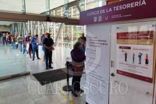 CIUDAD DE MÉXICO, 03ENERO2023.- Decenas de personas formaron largas filas para el pago del predial en los kioskos de la tesorería ubicados en plazas comerciales de la capital. FOTO: DANIEL AUGUSTO/ CUARTOSCURO.COM