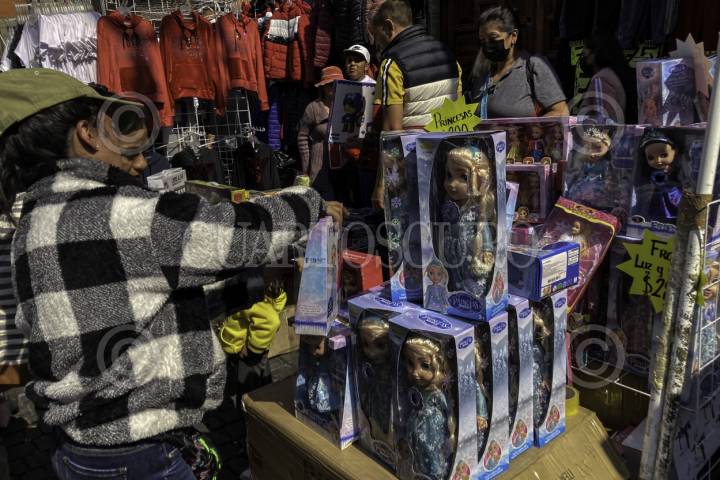 CIUDAD DE MÉXICO, 04ENERO2022.- Decenas de personas abarrotan las inmediaciones de la calle Colombia en el Centro Histórica dedicada a la venta de juguetes, previo al Día de Reyes Magos. FOTO: ANDREA MURCIA /CUARTOSCURO.COM