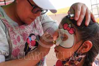 CIUDAD DE MÉXICO, 04ENERO2023.- Previo a la celebración de la llegada de los Reyes Magos, una mujer pinta del personaje de Kitty el rostro de una niña en la alcaldía Iztapalapa. FOTO: GRACIELA LÓPEZ /CUARTOSCURO.COM