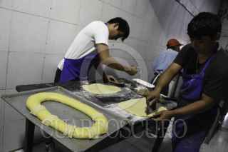 CAMPECHE, CAMPECHE 04ENERO2023. -Con más de 70 años la panadería Don Carmito Alonso elabora las tradicionales roscas de reyes, durante los días 4, 5 y 6 llegan a realizar hasta más de mil roscas diarias entre las tradicionales, queso crema y queso de bola los precios oscilan desde 150 hasta 490. FOTO: MICHAEL BALAM/CUARTOSCURO.COM