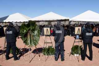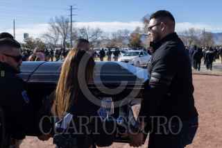 CIUDAD JUÁREZ, CHIHUAHUA, 04ENERO2023.- Realizan honores a los 10 custodios penitenciarios que perdieron la vida durante el motín donde escapan 30 reos del CEFERESO, también rindieron honores a dos agentes investigadores que se enfrentaron a un grupo de sicarios donde también perdieron la vida 5 sicarios. FOTO: DAVID PEINADOS/CUARTOSCURO.COM