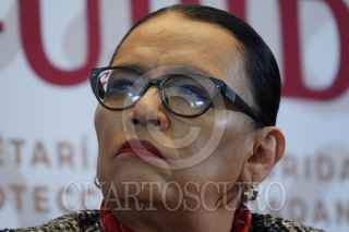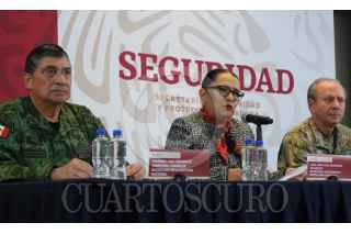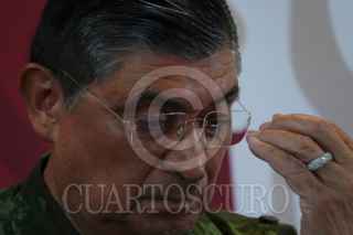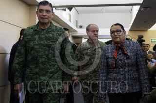 CIUDAD DE MÉXICO, 05ENERO2023.- Rosa Isela Rodríguez, secretaria de Seguridad Pública y Protección Ciudadana; Luis Crescenio Sandoval, secretario de la Defensa Nacional, y Rafael Ojeda Durán, secretario de Marina, encabezaron la conferencia de prensa en qué confirmaron la detención de Ovidio Guzmán López alias "El Ratón", líder de una de las secciones del Cártel del Golfo e hijo de Joaquín Guzmán Loera (preso en Estados Unidos). FOTO: GALO CAÑAS/CUARTOSCURO.COM