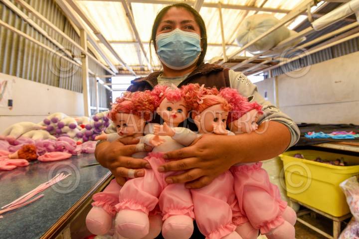 TOLUCA, ESTADO DE MÉXICO, 05ENERO2023.- Muñecas Paty es una empresa 100 por ciento Toluqueña que tiene más de 32 años que surgió a iniciativa de Jorge Fernando Camacho, que junto con su familia se han dedicado a elaborar muñecas de trapo, en su fábrica se elabora todo desde las cabezas, manos y pies, cuerpo, y vestimenta, han llegado a lugares como Veracruz, San Luis Potosí Michoacán, Celaya, Irapuato, Culiacán, Tuxtla Gutiérrez, y este año buscarán entrar al mercado de Monterrey y Guadalajara. Durante la época de Navidad y Día de Reyes su producción aumenta considerablemente, los tamaños que manejan van desde los 27 cm hasta los 80 cm de altura, las pueden encontrar en tiendas del grupo Garcés en el Estado de México así como pequeños negocios como tiendas, papelerías y mercerías. Un regalo que se puede dar durante todo el año ya que tiene una gran variedad de modelos. FOTO: CRISANTA ESPINOSA AGUILAR /CUARTOSCURO.COM