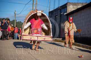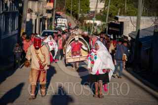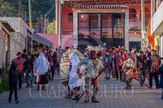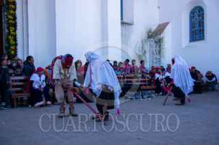 ZINACANTAN, CHIAPAS, 06ENERO2023.- Vestidos con trajes de gala, autoridades religiosas y tradicionales realizan la "Danza del Torito" en donde recorrieron las calles de la cabecera municipal y la iglesia principal de Zinacantan. Ancestralmente esta danza se hacía para estar en armonía con el universo, al paso del tiempo y debido al sincretismo con la religión católica se busca ahora la prosperidad, con la llegada del niño Dios y los Reyes Magos. FOTO: ISABEL MATEOS /CUARTOSCURO.COM