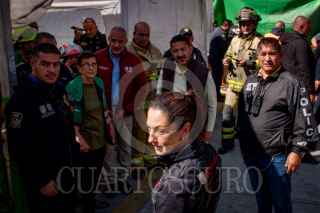 CIUDA DE MÉXICO, 07ENERO2023.- Claudia Sheinbaum, jefa de Gobierno; Omar García Harfuch, secretario de Seguridad Ciudadana, y Andrés Lajous, secretario de Movilidad, acudieron a la zona donde se encuentran los servicios de emergencia que se movilizaron para atender a las personas heridas del choque de trenes del Metro ocurrido entre las estaciones Potrero y La Raza. FOTO: ROGELIO MORALES /CUARTOSCURO.COM