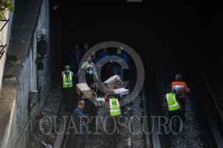 CIUDAD DE MÉXICO, 07ENERO2023.- Continúan los trabajos de peritaje por personal de la Fiscalía General de Justicia de la capital en las vías del metro La Raza de la Línea 3 con apoyo de personal de Protección Civil y trabajadores del STC Metro. FOTO: MARIO JASSO/CUARTOSCURO.COM