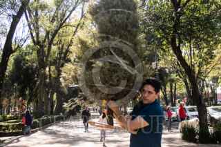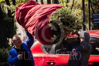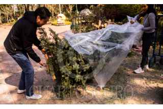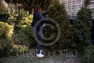 CIUDAD DE MÉXICO,. 08ENERO2023.- Habitantes de la alcaldía Benito Juárez, acuden a dejar su árbol de Navidad al parque de los Venados de esta demarcación. Trabajadores lo hace composta para abono de plantas. FOTO: VICTORIA VALTIERRA/CUARTOSCURO.COM