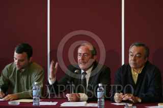 MÉXICO, D.F. 12MARZO2007.- Leonel Cota Montaño, presidnte del Partido de la Revolucuón Democrática se reunió con líderes de partidos latinoamericanos de izquierda. En la imagen con Valter Pomar, representante de el Partido de los Trabajadores en Brasil y Ricardo Cantú, del Partido del Trabajo. FOTO: PAOLA HIDALGO/CUARTOSCURO.COM