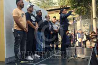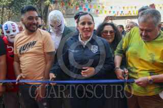 CIUDAD DE MÉXICO. 09ENERO2023.- La Alcaldesa de Cuauhtémoc Sandra Cuevas, inauguró el Mural más grande de Tepito, en la secundaria técnica 42 de la Colonia Morelos. Asistieron vecinos artistas y personajes del tradicional barrio bravo. FOTO: VICTORIA VALTIERRA/CUARTOSCURO.COM