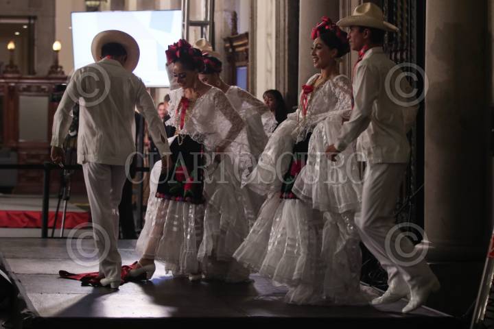 CIUDAD DE MÉXICO, 09ENERO2022.- Jill Biden, primera dama de Estados Unidos; Beatriz Gutiérrez Müller, escritora y esposa del presidente de México, Andrés Manuel López Obrador, durante el Fandango Cumbre de las Americas que se lleva a cabo en Palacio Nacional. FOTO: ANDREA MURCIA /CUARTOSCURO.COM