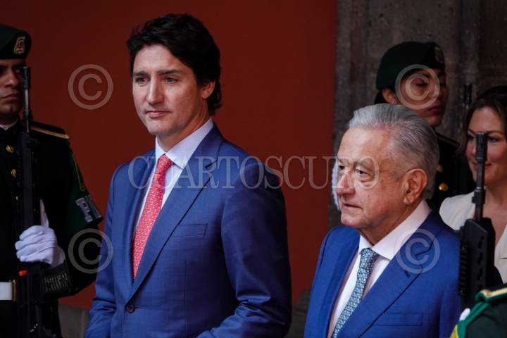 CIUDAD DE MÉXICO, 10ENERO2023.- Andrés Manuel López Obrador, presidente de México, y Beatriz Gutiérrez Müller, investigadora y primera dama, encabezaron el recibimiento de los presidentes Joe Biden (EEUU) y Justin Trudeau (Canadá) junto con las primeras damas Jill Biden y Sophie Grégoire Trudeau en Palacio Nacional de cara a la Cumbre de Líderes de América del Norte. FOTO: GALO CAÑAS/CUARTOSCURO.COM