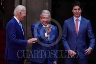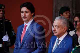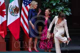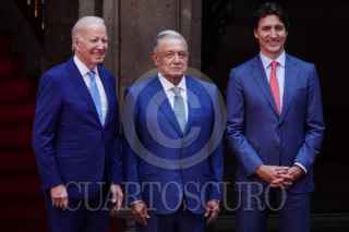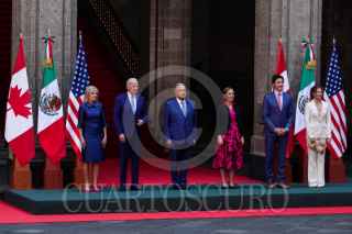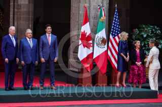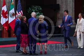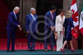 CIUDAD DE MÉXICO, 10ENERO2023.- Andrés Manuel López Obrador, presidente de México, y Beatriz Gutiérrez Müller, investigadora y primera dama, encabezaron el recibimiento de los presidentes Joe Biden (EEUU) y Justin Trudeau (Canadá) junto con las primeras damas Jill Biden y Sophie Grégoire Trudeau en Palacio Nacional de cara a la Cumbre de Líderes de América del Norte. FOTO: GALO CAÑAS/CUARTOSCURO.COM
