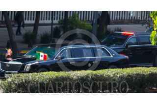 CIUDAD DE MÉXICO. 10ENERO2023.- El vehículo blindado llamado La Bestia, que traslada al Presidente Joe Biden en su visita a México durante su paso en Paseo de la Reforma. FOTO: VICTORIA VALTIERRA/CUARTOSCURO.COM
