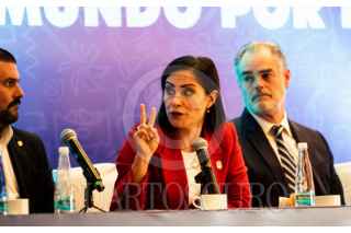 CIUDAD DE MÉXICO. 10ENERO2023.- Presentación de la Feria Estatal de León 2023, en Guanajuato, la misma que encabezaron David Novoa, Alejandra Gutiérrez y José Álvarez. La alcaldesa, anunció grandes espectáculos y actividades culturales para toda la familia. FOTO: VICTORIA VALTIERRA/CUARTOSCURO.COM