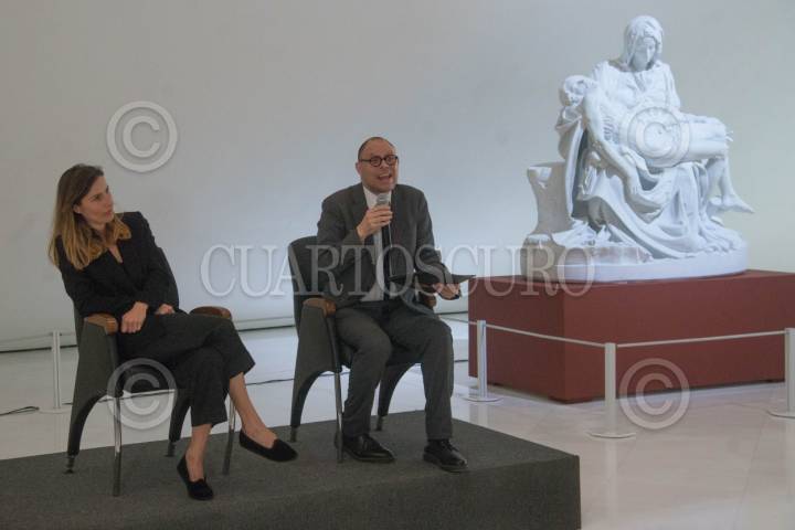 CIUDAD DE MÉXICO, 10ENERO2023. El Museo Soumaya y Fundación Carlos Slim, presentaron las versiones en mármol de las esculturas del renacimiento: “La Piedad” y “El David de Michelangelo Buonarroti, las cuales serán exhibidas en el vestíbulo del Museo Soumaya en Plaza Carso. Las esculturas fueron realizadas con la autorización que Museos Vaticanos y el gobierno italiano otorgaron a la casa fundidora artística Ferdinando Marinelli. Dichas esculturas se tallaron en Florencia por la Galería Puerto Bazzanti, a escala 1:1. FOTO: MARIO JASSO/CUARTOSCURO.COM