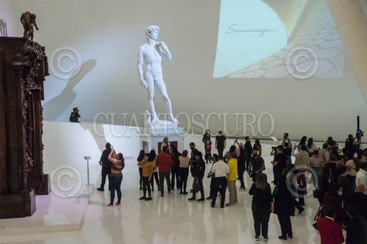 CIUDAD DE MÉXICO, 10ENERO2023. El Museo Soumaya y Fundación Carlos Slim, presentaron las versiones en mármol de las esculturas del renacimiento: “La Piedad” y “El David de Michelangelo Buonarroti, las cuales serán exhibidas en el vestíbulo del Museo Soumaya en Plaza Carso. Las esculturas fueron realizadas con la autorización que Museos Vaticanos y el gobierno italiano otorgaron a la casa fundidora artística Ferdinando Marinelli. Dichas esculturas se tallaron en Florencia por la Galería Puerto Bazzanti, a escala 1:1. FOTO: MARIO JASSO/CUARTOSCURO.COM